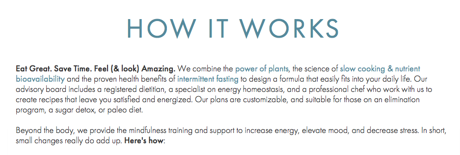 Program 2.0 also isn't inexpensive, but the price is fair for 15 meals (six days of food!) Going through the program, you feel a sense of accomplishment. You also save on time. You're eating vegan food, and cleansing your body. You're teaching your taste buds to enjoy vegetables and fruits. And you see what good portions sizes are for each meal.